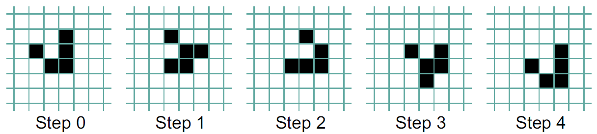 Conway's automaton consists of cells that are laid out on a two-dimensional grid.